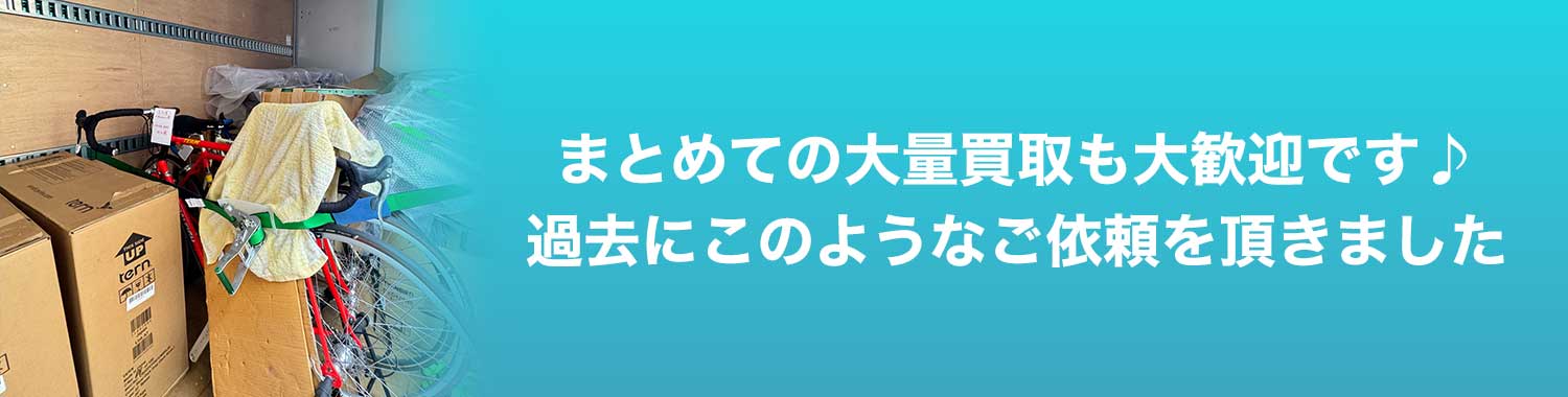 当店では、ロードバイクを中心にスポーツ自転車の買取を行っており、法人様・団体様からのご相談も増えてきました。すでに販売店様の在庫整理や、行政機関での案件対応の実績もございます。